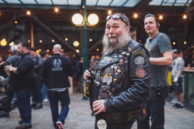 Một Biker lớn tuổi tại triển lãm. Ngoài việc trưng bày những chiếc xe độ, sự kiện cũng gần như một tuần lễ thời trang mini của riêng giới chơi xe bởi sự góp mặt của rất nhiều phong cách thời trang khác nhau, với những con người khác nhau, trên những chiếc xe khác nhau, nhưng tim đập cùng một nhịp.