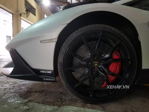 Xe được trang bị bộ la-zăng hợp kim siêu nhẹ màu đen. Phía sau bộ la-zăng là cùm phanh sơn đỏ bắt mắt. Tương phản với tông màu trắng nổi bật của ngoại thất là tông màu đen của cản trước, hệ thống khuếch tán gió, cản sau.