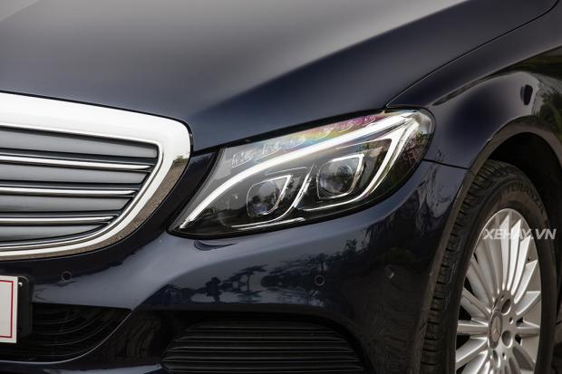 Ngược lại, Mercedes C250 lại mang bộ mặt nghiêm nghị, bệ vệ hơn với mặt ca-lăng hình chiếc khiên có các nan đóng mở tự động, hai cụm đèn pha full LED và logo ngôi sao ba cánh thẳng đứng trên nắp capô. Nếu như gương mặt của A4 được tạo nên bởi những đường thẳng dứt khoát thì “mặt tiền” của C250 được chạm khắc bởi những đường nét vô cùng uyển chuyển – đặc trưng của ngôn ngữ thiết kế “Sự thuần khiết gợi cảm”.