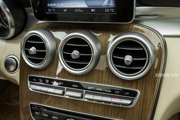 Các cửa gió điều hòa của C250 và các nút điều khiển tương tự như phím đàn là thiết kế C250 kế thừa từ S-Class. Thật khó để tìm ra điểm để chê chi tiết này, rất đẹp và hòa nhập với thiết kế tổng thể khoang cabin.