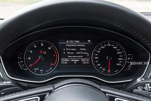 Cụm đồng hồ của hai xe đều là dạng cơ với màn hình ở giữa. Audi A4 có tùy chọn đồng hồ điện tử Virtual Cockpit với màn hình LCD 12,3 inch.