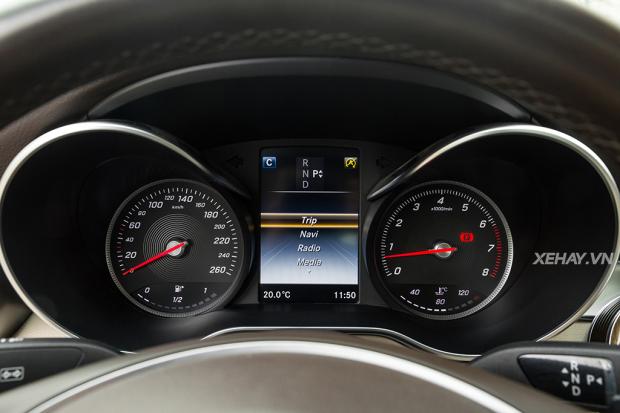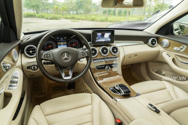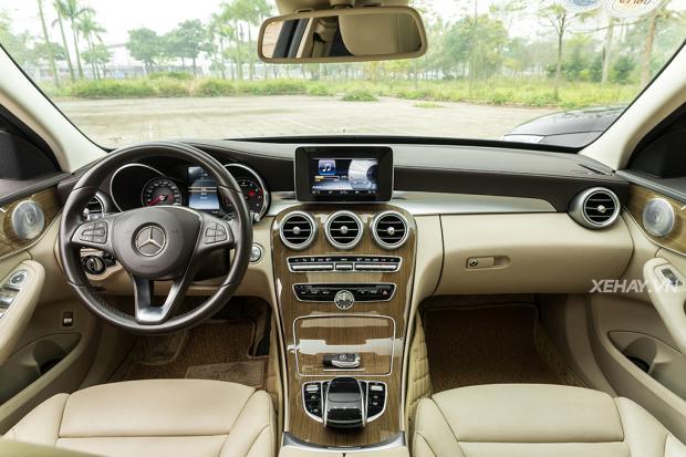 Bảng táp lô C250 có thiết kế dày dặn hơn và gắn liền bảng điều khiển trung tâm với điểm nhấn là mảng gỗ tuyệt đẹp ở giữa và các cửa gió điều hòa thiết kế tròn kiểu cổ điển.