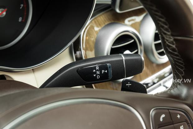 Cần chuyển số kiểu đặc trưng của Mercedes đặt sau vô lăng. Phải mất một chút thời gian làm quen nhưng nếu đã quen với kiểu chuyển số này thì ta sẽ thấy nó rất tiện dụng. Mercedes C250 đời 2016 vẫn chỉ được trang bị hộp số tự động 7 cấp 7G Tronic.