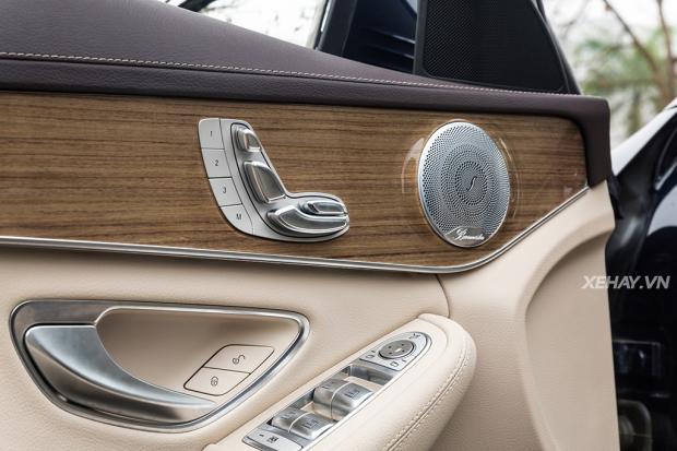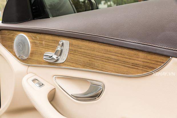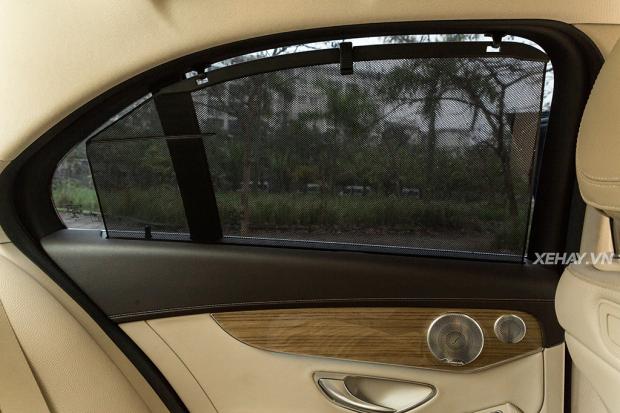 Rèm cửa sau cũng là lợi thế của C250, thậm chí táp pi cửa sau cũng rất đẹp với hai màu da và phần gỗ ốp, màng loa tuyệt đẹp.