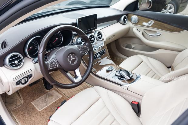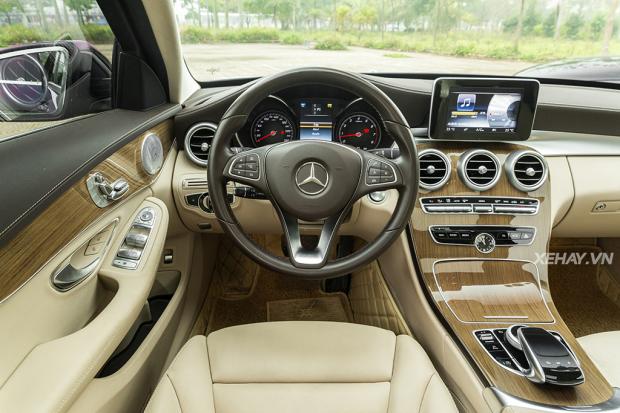 Ngược lại, khoang cabin C250 Exclusive toát lên vẻ sang trọng cổ điển với các chi tiết gỗ da được phối màu rất đẹp mắt và vô lăng tròn bọc da, ốp nhôm.