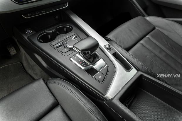 Audi A4 được trang bị hộp số ly hợp kép 7 cấp. Cần số điện tử của Audi A4 có thiết kế rất đẹp và có cảm giác cầm rất vừa tay, nếu cần chuyển số bằng tay, người lái có thể dùng lẫy chuyển số sau vô lăng.