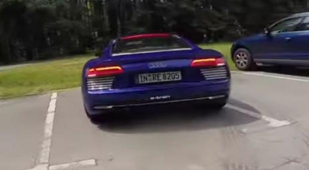 Phiên bản thứ 2 của R8 e-tron đã được tiết lộ vào đầu năm 2015. Tuy nhiên, các kỹ sư thử nghiệm không lấy gì làm vui nếu bị quay phim. Thấy dường như mình không thể rời đi, người đàn ông lái xe điện tấp vào lề, chờ đợi cho đến khi những tay săn ảnh dừng lại và sau đó siêu xe thể thao tiếp tục 'vọt' đi.