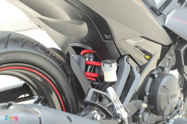 Cụm giảm sốc đơn phía sau được sơn đỏ, tương tự trên những mẫu xe thể thao phân khối lớn.