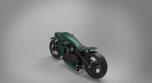 Chiếc Harley-Davidson của tương lai được thiết kế với hai tông màu xanh rêu-đen mờ đối lập. Tổng thể xe được ví như việc dùng bình xăng mỏng và ống xả đôi ốp vào động cơ.