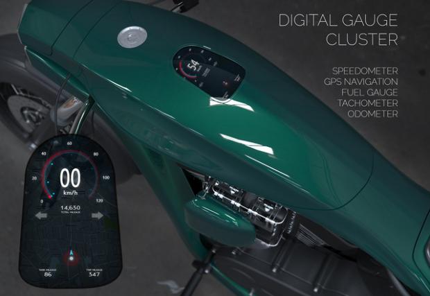 Trên bình xăng là đồng hồ hiển thị kỹ thuật số bao gồm các thông tin như: vận tốc, định vị GPS, mức tiêu hao nhiên liệu, đo quãng đường đi được,...
