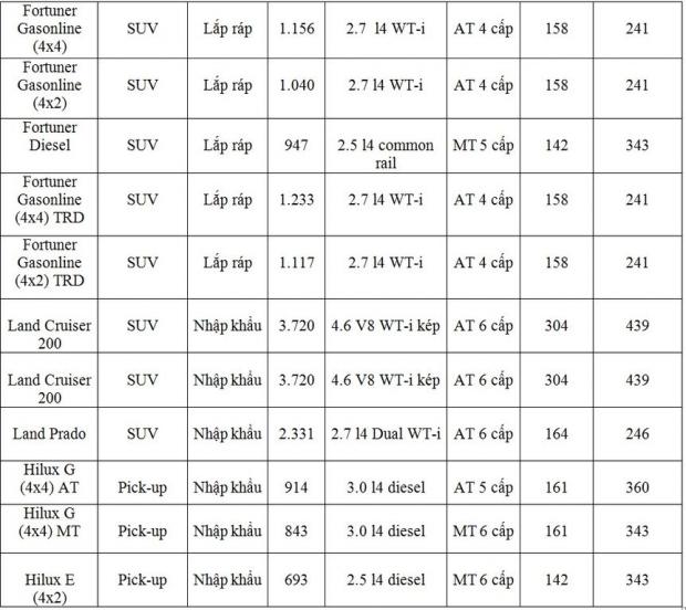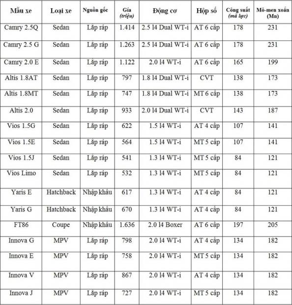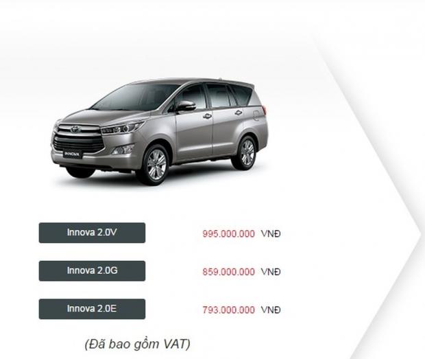 Lưu ý giá bán Innova trong bảng giá trên là giá của Innova 2015. Giá bán của Innova 2016 vừa ra mắt được cập nhật dưới đây.