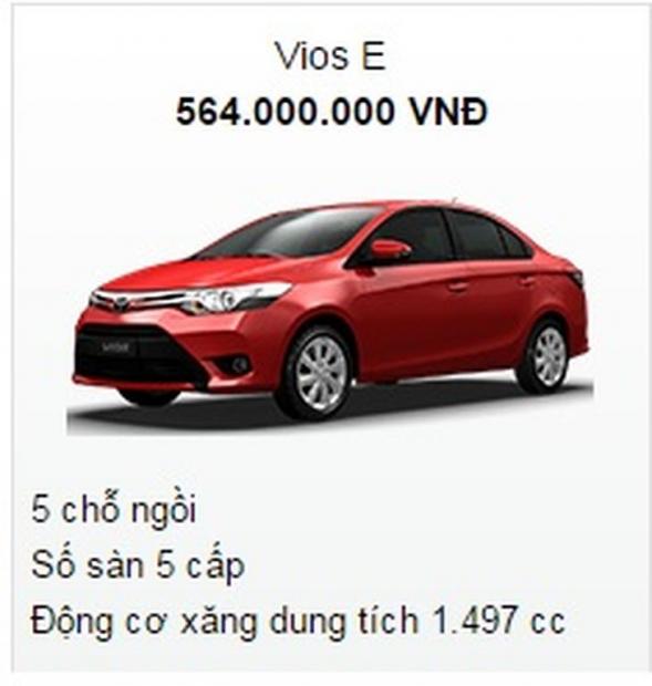Dòng Vios phân làm các loại Vios E, Vios G, Vios J với nhiều màu sắc đa dạng, mức giá giữa Vios E, Vios G, Vios J chênh lệch không đáng kể, giá của Vios E: 564.000.000 VNĐ; Vios G: 622.000.000 VNĐ, Vios J: 541.000.000 VNĐ . Vios có dung tích bình nhiên liệu 42 lít, mức tiêu thụ nhiên liệu từ 7.2 đến 8.2 lít/ 100km đường trong đô thị và ở từ 5.2 đến 5.7 lít/100km đường ngoại thành. Chính vì vậy mà đây là dòng xe được ưa chuộng đứng thứ hai của Toyota.