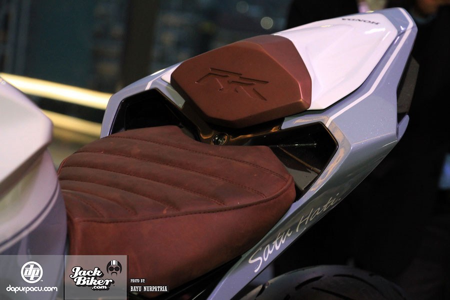 Bản thân yên đơn dành cho 1 người ngồi của chiếc Honda CBR250RR phiên bản độ cũng được bọc màu nâu đồng 'tông xuyệt tông'.