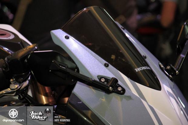 Thêm vào đó là kính chắn gió theo phong cách bong bóng, mang đến vẻ lạ mắt cho chiếc Honda CBR250RR độ chính hãng.