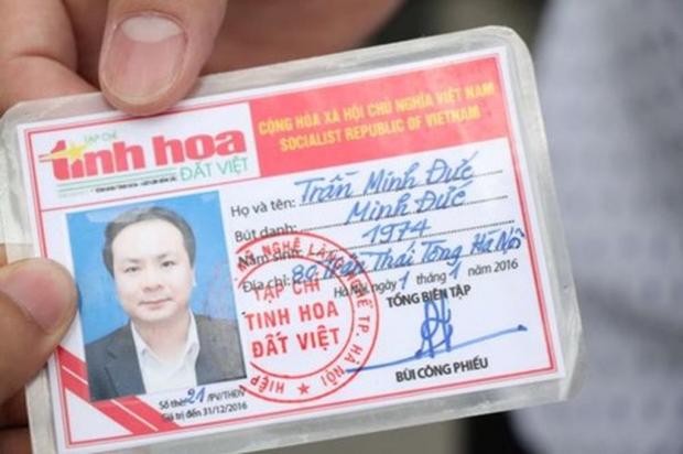 Qua ghi nhận, bên mặt ngoài Quốc huy của tấm thẻ ghi “Thẻ này thay giấy giới thiệu của tòa soạn”; được ký vào ngày 1/1/2016 có giá trị đến thời hạn ngày 31/12/2016 có chữ ký ghi của Tổng biên tập tạp chí là ông Bùi Công Phiếu.