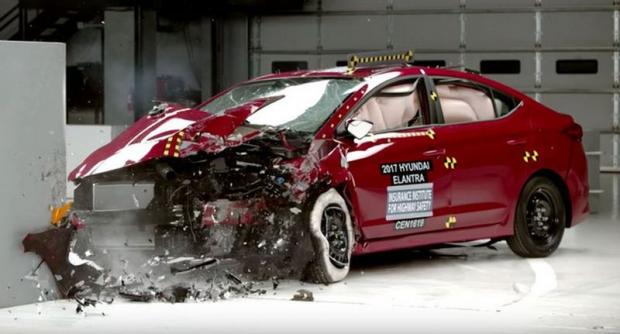 Hyundai đã cải thiện đáng kể cấu trúc phía trước của Elantra để xử lý tốt hơn thử nghiệm đâm trực diện góc nhỏ. Mẫu xe 2017 được đánh giá 'Tốt', với chỉ 51mm độ lún của cột đỡ phía dưới.