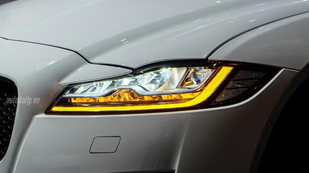 Tương xứng với mức giá cao hơn, Jaguar XF luôn có sự khác biệt đối thủ đến từ Đức. Ở thế hệ thứ 2, ngoại hình XF không thay đổi. Hốc lấy gió khu vực đầu xe được thiết kế lại, cân đối hơn về tổng thể. Sự thay đổi lớn nhất nằm ở cụm đèn pha mang ngôn ngữ thiết kế mới đặc trưng “J” Blade Daytime Running Light cùng dải đèn LED full-size kéo dài. Công nghệ đèn LED của Jaguar giúp tạo ra ánh sáng có cường độ ngang bằng với ngưỡng nhìn của mắt người. Cụm đèn hậu phía sau cũng thiết kế lại với dãy đèn LED mang cảm hứng từ mẫu xe thể thao F-Type.