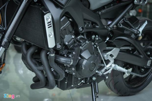 Cung cấp sức mạnh cho xe là động cơ crossplane 3 xi-lanh, dung tích 850cc, sản sinh công suất 115 mã lực tại 10.000 vòng/phút và mô-men xoắn cực đại 87,5 Nm tại 8.500 vòng/phút, hộp số 6 cấp, phun xăng điện tử