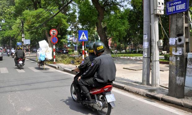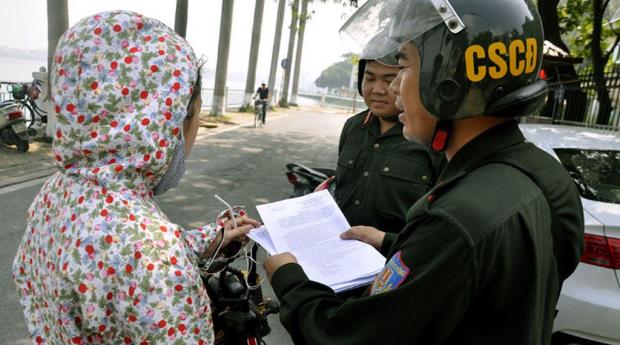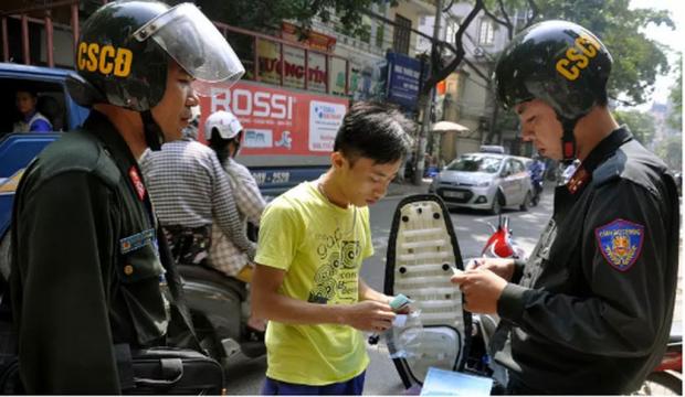 Nhắc nhở, xử phạt người điều khiển, người ngồi trên môtô, xe gắn máy, xe máy điện, xe đạp máy vi phạm quy định của pháp luật về mũ bảo hiểm trên địa bàn 12 quận và các huyện ngoại thành Hà Nội