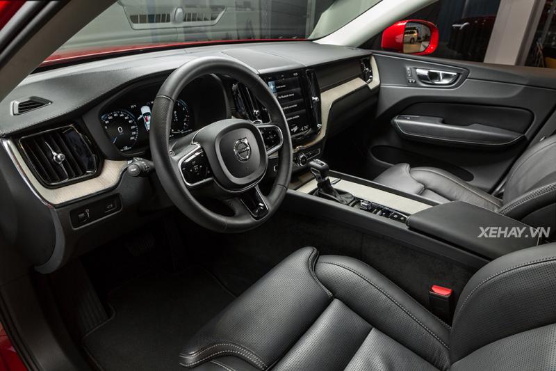 Vô lăng của Volvo XC60 cũng là một chi tiết đáng nhắc tới. Viền vô lăng dày dặn, được bọc da rất mềm mại và đục lỗ thông gió ở 2 vị trí cầm. Đây là chi tiết rất đáng khen vì đa phần đối thủ cùng phân khúc không có các lỗ thông gió hữu ích này. Ở chấu bên trái vô lăng là cụm điều khiển các tính năng Kiểm soát hành trình thích ứng và hỗ trợ lái Pilot Assist, cũng như điều chỉnh khoảng cách bám đuôi xe phía trước, trong khi bên phải là cụm phím điều khiển đa phương tiện và ra lệnh giọng nói. Hơi tiếc là khi tắt máy, vô lăng và ghế ngồi không tự động thu lại để người lái dễ bước ra hơn.