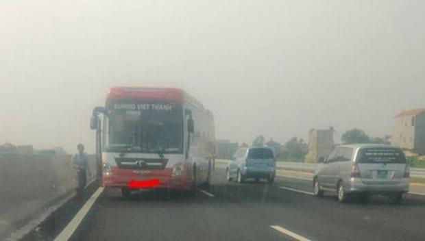 Cùng thời điểm trên, chiếc xe khách mang BKS 35C - 033.89 đi ngược chiều trên đường cao tốc Hà Nội-Hải Phòng. Đáng chú ý, khi đi được một đoạn thì bất ngờ chiếc xe này chết máy đỗ ở ven đường.