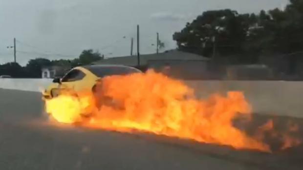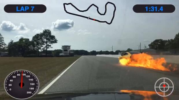 Ngọn lửa mạnh tới mức Charles cố thắng phanh nhưng vô ích, vì chất lỏng của phanh thủy lực đã nóng sôi. Anh cố dừng chiếc GT350 lại nhưng tay phanh không hoạt động. Chiếc xe đã đạt tốc độ 160 km/h, lúc này người lái xe nhanh trí đã chuyển ngay về số một và vứt luôn tay côn, phá hủy hệ truyền động nhưng lại khiến xe dừng lại được.