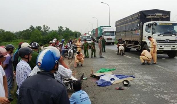 Cú va chạm khiến nạn nhân Tạ Văn Vân (SN 1980, tạm trú tỉnh Bình Dương) ngã xuống đường, bánh xe container cán qua người tử vong tại chỗ, nam thanh niên đi cùng may mắn thoát chết. Tài xế đã bỏ trốn khỏi hiện trường sau vụ tai nạn.