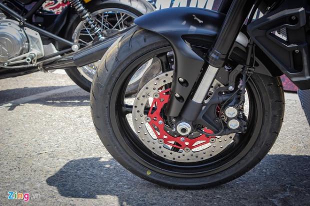 Xe trang bị hệ thống an toàn với phanh đĩa đôi đường kính 320 mm phía trước và đĩa đơn đường kính 220 mm phía sau, tích hợp chống bó cứng phanh ABS. Giảm xóc trước hành trình ngược đường kính 43 mm, hành trình 120 mm. Giảm xóc sau dạng lò xo, hành trình 120 mm. Lốp trước kích thước 120/70-17, lốp sau 190/55-17.
