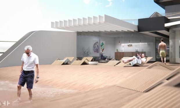 Chiếc du thuyền này dài hơn 100 m, và được thiết kế để hoạt động như trung tâm vui chơi giải trí di động trên biển dành cho các tỷ phú.