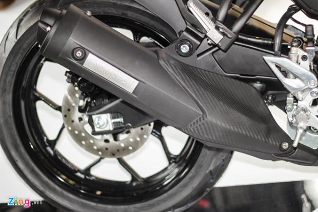 Ống xả thể thao được bọc cách nhiệt khá tốt. Lớp nhựa giả vân carbon tạo cảm giác cao cấp.
