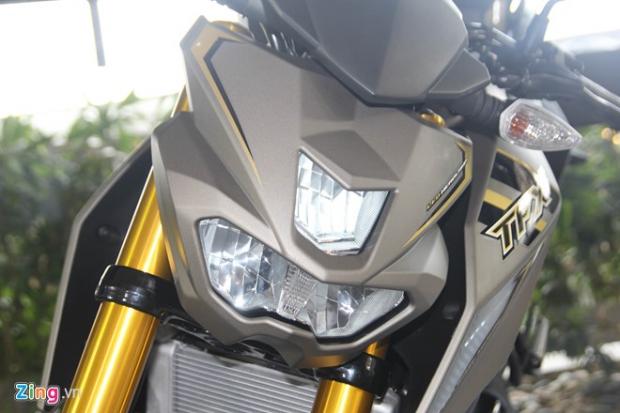 Cặp phuộc upside-down đường kính 37 mm là món đồ chơi nổi bật nhất ở phần đầu. Thông thường, cặp phuộc ngược chỉ được trang bị trên những chiếc xe thể thao phân khối lớn đắt tiền chứ không phải một mẫu xe cỡ nhỏ giá thấp như TFX150.