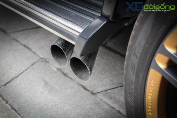 Hai bên hông là ống xả kép nằm phía cuối bậc lên xuống Tem chữ Brabus nổi phía đuôi Cụm đèn LED chạy ngày và ở tấm lướt gió gầm gây sự chú ý và nổi bật trên nền nước sơn đen của lớp vỏ