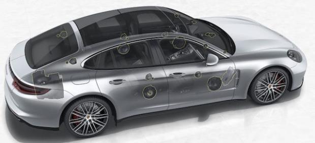 Sơ đồ phác họa vị trí loa trang bị trên Porsche Panamera 2017