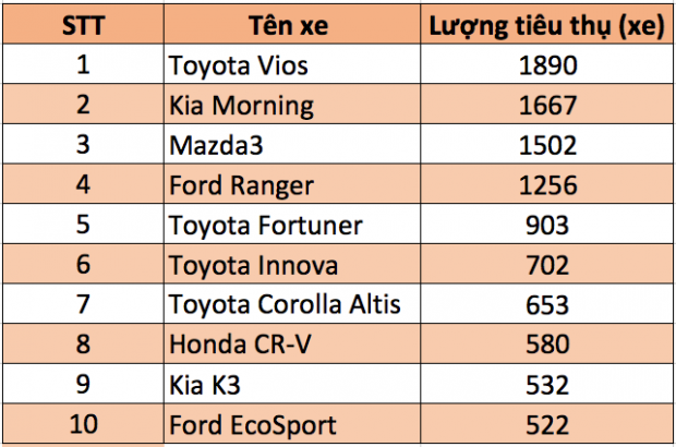 10 xe bán chạy nhất Việt Nam trong tháng trước khi tăng thuế