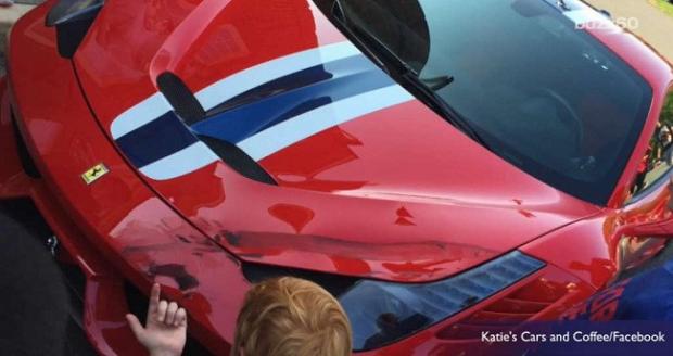 Clip do một người hiếu kì tại quán Cars and Coffees ở Great Falls, Virginia, Mĩ ghi lại. Theo thông tin ghi nhận sự việc xảy ra do người phụ nữ ngồi trên chiếc Mercedes 380SL mui trần cố gắng tìm một chỗ đỗ xe bên ngoài quán, trong lúc lùi xe do không quan sát phía sau và cũng do mũi xe của chiếc 458 quá thấp khiến cho người phụ nữ này lùi thẳng và đè vào đèn trước của chiếc 458.