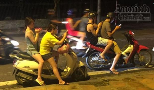 Gần như cả ngày, khu vực này lúc nào cũng xuất hiện cả trăm người chơi Pokemon. Ngay cả việc đi bộ dán mắt vào điện thoại để bắt Pokemon đã rất nguy hiểm, chứ chưa nói đến chuyện sử dụng xe máy....