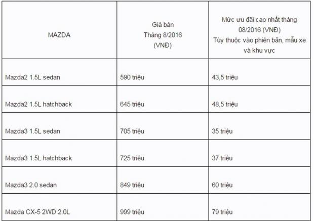 Cụ thể đối với thương hiệu Mazda: