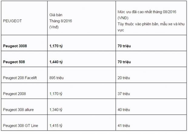 Còn đối với Peugeot thì các mẫu Peugeot 3008 và 508 là 2 mẫu xe có ưu đãi cao nhất tới 70 triệu đồng.