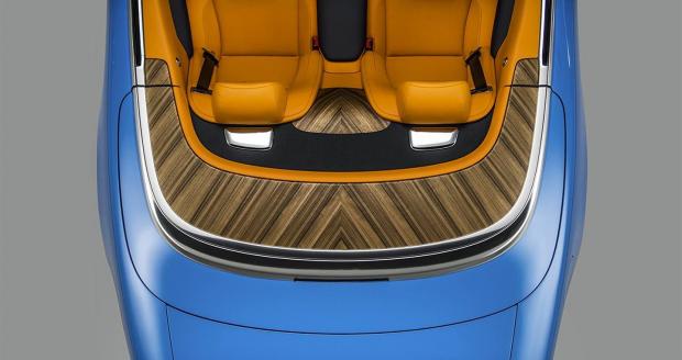 Chiếc mui trần “siêu sang” Dawn này là sản phẩm do chương trình cá nhân hóa Bespoke của Rolls-Royce thiết kế với điểm nhấn màu sơn ngoại thất xanh dương, bên trong nội thất được bọc da cao cấp màu cam. Bên cạnh đó là cụm phanh màu đen bóng và biểu tượng “Spirit of Ecstasy” được mạ vàng và có thể phát sáng.
