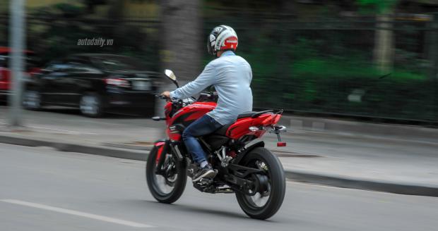 Sau một hồi làm quen và tìm hiểu về thiết kế cũng như chức năng của các phím bấm trên xe tôi bắt đầu đi vào trải nghiệm khả năng vận hành của khối động cơ. Ở dải vòng tua đầu, xe hoạt động khá ổn định. Máy chạy êm, hiện tượng gằn không xuất hiện quá sớm ở số 1 cũng như số 2. Bắt đầu đưa xe lên tốc độ cao hơn và chuyển lên những cấp số lớn, chiếc naked-Bike 200 phân khối này bắt đầu tỏ ra ưu thế hơn so với những đối thủ cùng tầm giá nhưng có dung tích chỉ 150 và 160 phân khối.