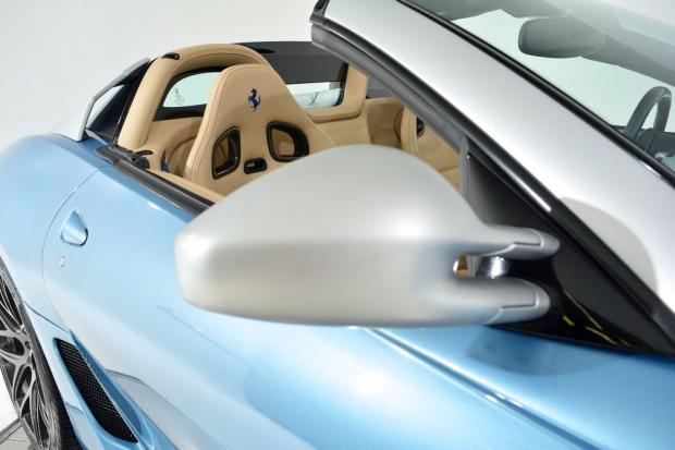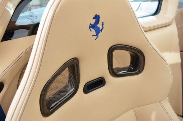 'Siêu ngựa' được khoác một lớp áo màu xanh sáng Avio Met và nội thất phủ da Sabbia, chiếc xe này cũng rất ít được lăn bánh khi đồng hồ công-tơ mét mới chỉ dừng ở con số 957 dặm.