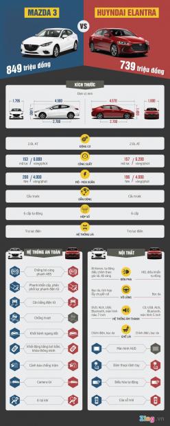 Thời điểm hiện tại, Hyundai Elantra 2.0L 2017 đang được niêm yết giá bán ở mức 739 triệu đồng trong khi phiên bản cao cấp nhất của Mazda3 được bán với giá 760 triệu đồng.