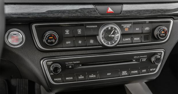 Về nội thất, Kia Cadenza mới được cải thiện chất lượng tốt hơn gồm một màn hình hiển thị Head-Up, hệ thống camera toàn cảnh mới (Surround View Monitor), một bộ sạc điện thoại không dây, hệ thống thông tin giải trí UVO mới nhất của Kia có thể kế nối với Android Auto và Apple CarPlay và hệ thống âm thành Harman/vKardon 12 loa cho công suất 630Watt.