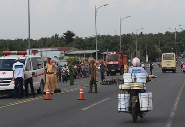 Ngay sau khi xảy ra vụ TNGT nghiêm trọng, lực lượng CSGT- Công an TP Bến Tre cùng ngành chức năng đến khám nghiệm hiện trường, điều tiết giao thông và điều tra vụ việc.