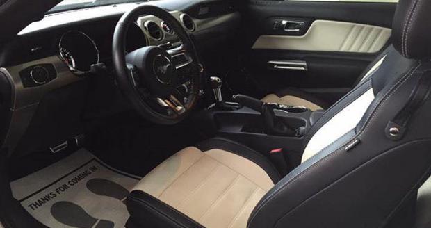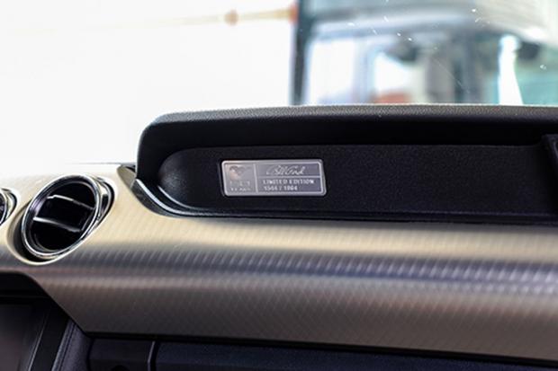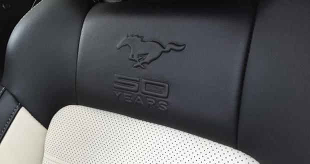 Ở bên trong, 2 ghế trước của xe được gắn logo bản kỉ niệm 50 năm, một logo Ford Mustang 50 Years Edition đi kèm số thứ tự của xe tiếp tục xuất hiện trên tap-lô thẳng vị trí ghế phụ.