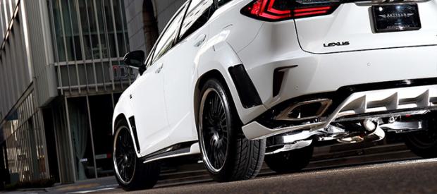 Với mẫu Lexus RX thế hệ mới, Artisan Spirits thiết kế mẫu bodykit dòng thể thao Sports Line Black Label, với nhiều chi tiết ngoại thất làm tăng thêm chất thể thao, mạnh mẽ cá tính cho RX. Bộ phụ kiện gồm nhiều chi tiết gồm ốp cánh gió cản trước, ốp hướng gió 2 bên sườn, bộ khuếch tán khí động ốp dưới cản sau là 3 chi tiết chính của bộ bodykit. Ngoài ra còn có ốp mở rộng hốc bánh xe tăng thêm 30mm hoặc loại tăng thêm 10mm, cánh gió trên cửa hậu và trên mui, các viền ốp cản trước, cản sau và hốc đèn sương mù.