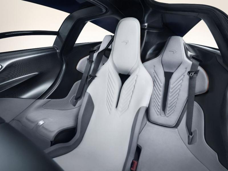 Các panel thân xe và thậm chí cả logo McLaren ở trước mũi xe cũng đều được làm từ sợi carbon (logo làm bằng vàng trắng được cung cấp dưới dạng tùy chọn. Nhờ tất cả những điều trên mà Speedtail sở hữu cân nặng vô cùng ấn tượng, chỉ 1.430kg.