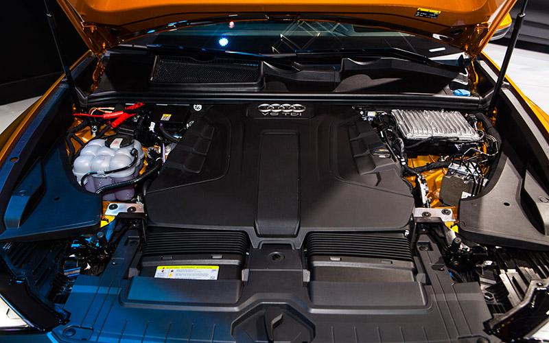 Mẫu Q8 được trưng bày trong triển lãm lần này là dòng SUV Coupe vừa ra mắt tại châu Âu nên dễ hiểu tại sao nó lại được trang bị động cơ Diesel TDI V6 3.0L. Động cơ này cho công suất 286 mã lực, mô-men xoắn 600 Nm đi kèm hộp số tự động 8 cấp Tiptronic và hệ thống dẫn động 4 bánh Quattro. Tuy nhiên, phiên bản dự kiến dành cho thị trường Việt Nam vào năm sau sẽ là bản động cơ xăng TFSI V6 3.0L công suất 335 mã lực.