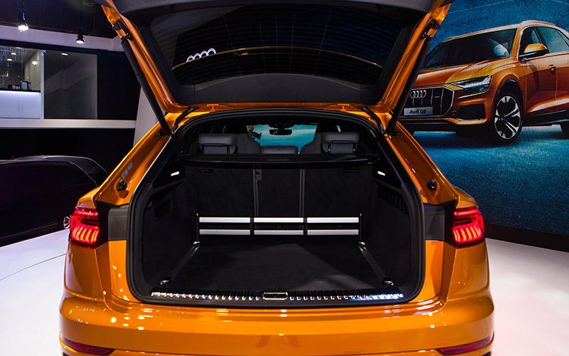 Do phía sau được thiết kế dốc nên không gian chứa đồ của Audi Q8 cũng bị hạn chế hơn với 650 lít và đạt 1.755 lít khi gập hàng ghế sau xuống, trong khi Audi Q7 sẽ là 770/1.955 lít.