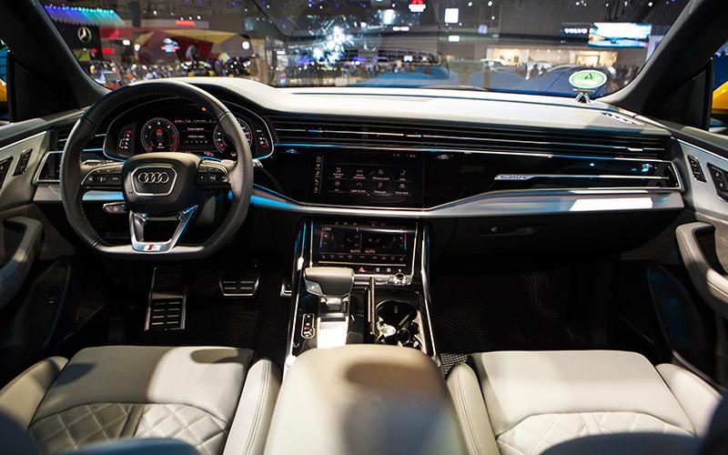 Audi Q8 ra mắt tại VMS 2018 được trang bị rất nhiều tính năng dưới dạng tùy chọn như màu sắc ghế ngồi với chức năng thông gió và massage, vô lăng điều chỉnh điện, màn hình hiển thị kính lái HUD, bảng đồng hồ kỹ thuật số Virtual Cockpit với màn hình 12.3 inch có độ phân giải cao, hệ thống đèn pha LED Matrix HD, chìa khóa cảm ứng, hệ thống chiếu sáng nội thất đổi màu, điều hòa tự động 4 vùng độc lập, hệ thống âm thanh cao cấp Bang & Olufsen…